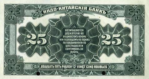 Keywords: Banque d'Indo-Chine 25 roubles 1919 rev.jpg en Banque d'Indo-Chine 25 roubles 1919 rev jpg own Dvergar Money of Civil war of Russia Banknotes with a face value of 25