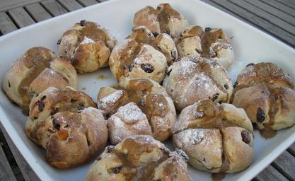 Keywords: Ban'ses Crouaîsies - Hot Cross Buns 1.jpg Des ban'ses crouaîsies grées l'Vendrédi B'nêt 2012 Hot cross buns made on Good Friday 2012 own photo 2012-04-06 16 42 46 Man vyi Breads of Jersey Easter 2012 Hot cross buns