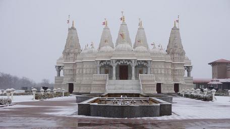 Keywords: baps hindu temple religion snow white winter faith hindu god religious place sacred chicago united states