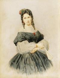 | Keywords: Barabás Portrait of a Young Couple – The Woman.jpg Artwork Creator Barabás Miklós Portrait of a Young Couple “ The Woman 1859 Watercolor on paper Size cm 15 6 20 Private collection object history exhibition history credit line bottom right Barabás LangSwitch unreadable date olvashatatlan dátum A pair of portraits <gallery> File Barabás Portrait of a Young Couple “ The Woman jpg File Barabás Portrait of a Young Couple “ The Man 1859 jpg </gallery> accession number http //www liveinternet ru http //www liveinternet ru/users/4070986/post149663279/ Info http //s53 radikal ru/i142/1010/07/106bb1c2b29c jpg Pic More info http //www kieselbach hu/artwork/portrait-of-a-young-couple---the-man_9192 PD-old-100 Portrait paintings by Miklós Barabás Watercolor paintings by Miklós Barabás in private collections 1859 watercolor paintings |