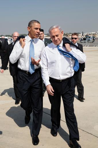 | Keywords: Barack Obama and Benyamin Netanyahu.jpg en United States President Barack Obama talks with Israeli Prime Minister Benjamin Netanyahu as they walk across the tarmac at Ben Gurion International Airport in Tel Aviv Israel on 20 March 2013 2013-03-20 12 23 09 http //www flickr com/photos/whitehouse/8637772703 White House P032013PS-0408 Pete Souza PD-USGov DEFAULTSORT 20130320122309 Uploaded with UploadWizard Benyamin Netanyahu and Barack Obama Ben Gurion International Airport Barack Obama in Israel in 2013 Taken with Canon EOS 5D Mark III Photographs by Pete Souza Uploaded by O'Dea Blue neckties |