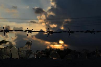 Keywords: barb wire wire gloomy sky barbed fence protection border barbwire boundary secure