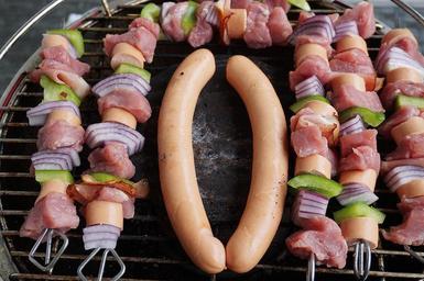 Keywords: barbecue sausage grill sausage sizzle meat hearty heat delicious eat food stainless grill sausages fireplace