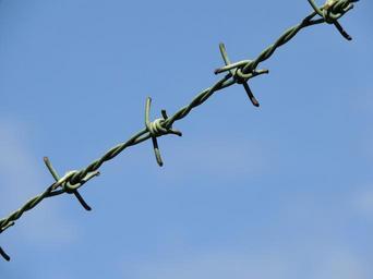 Keywords: barbed wire sky imprisoned wire fence