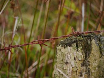 Keywords: barbed wire stainless metal wire rusted thorn fenced defense barrier