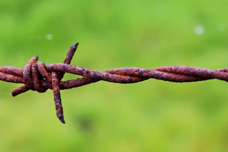 Keywords: barbed wire wire pasture green grass nature way metal fence risk thorn close security demarcation obstacle protection wiring sharp limit stainless pasture fence border pointed