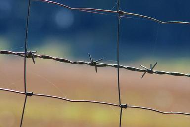 Keywords: barbed wire wiring security thorn fence demarcation limit barrier border wire defense sting risk metal tight iron carelessness barbed wire fence caution coupling