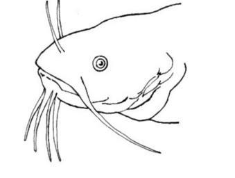 Keywords: Barbel (PSF).jpg Line art drawing of a Catfish Siluriformes Fish heads Catfish in art