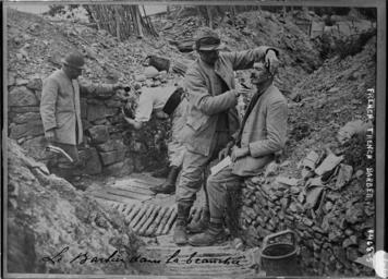 | Keywords: Barbier français tranchées.jpg en Barber in a french trench fr Barbier dans une tranchée française Library of Congress http //www loc gov/index html Bain News Service date Probably around 1916-1917 http //www loc gov/pictures/item/ggb2006001496/ sid 6aba07be978a384e15d5c9abd4e15be1 No known restrictions on publication according to the Library of Congress'website PD-USGov llll ;l; France in World War I World War I trench warfare Trenches and fortifications of World War I World War I forces of France Military life in World War I |