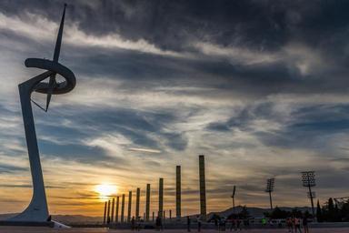Keywords: barcelona montjuic sunset horizon setting sun beauty