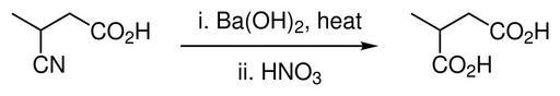 Keywords: Barium hydroxide-catalyzed methylsuccinic acid preparation.svg en Reaction scheme of barium hydroxide-catalyzed hydrolysis of a nitrile Own Calvero 2008-07-01 PD Image Methylsuccinic acid prepn png Nitrile hydrolysis