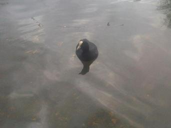 Keywords: Barnes Pond1 20101018.jpg en Eurasian Coot Fulica atra hu Szárcsa Fulica atra Barnes Pond Dénes Dalma 2010 október 18 Cc-zero Fulica atra swimming