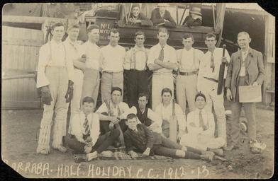 | Keywords: archives state records nsw staterecordsnsw newsouthwales blackandwhite school children exercise cricket barraba monochrome black and white Title: Barraba Public School - Half Holiday Cricket Club 1912-1913 Dated: year only 31/12/1913 Digital ID: 15051_a047_000744 Rights: No known copyright restrictions www.records.nsw.gov.au/about-us/rights-and-permissions We'd love to hear from you if you use our photos/documents. Many other photos in our collection are available to view and browse on our website using Photo Investigator. Title: Barraba Public School - Half Holiday Cricket Club 1912-1913 Dated: year only 31/12/1913 Digital ID: 15051_a047_000744 Rights: No known copyright restrictions www.records.nsw.gov.au/about-us/rights-and-permissions We'd love to hear from you if you use our photos/documents. Many other photos in our collection are available to view and browse on our website using Photo Investigator. |