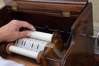Keywords: barrel organ street organ mechanics music wood piano roll sound redirection old antique