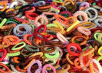 Keywords: barrettes color holiday ornament bright colored background a lot a bunch of quantity hairstyle children's