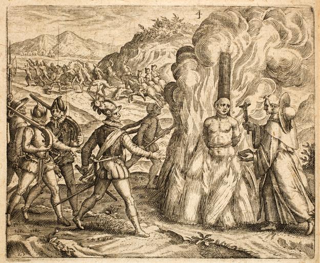 MAKE A MEME View Large Image Casas Regionum 355385740 MG 8837 016-4.tif nl Afbeelding 4 Mishandeling van indianen door Spanjaarden Verbranding aan de paal met priester en Figure 4 Abuse of Indians by Spaniards Burning at the stake with Catholic priest 1664 Institution ...
