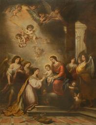| Keywords: Bartolome murillo-santa catalina cadiz.JPG Artwork Creator Bartolomé Esteban Perez Murillo La obra representa los desposorios místicos de la virgen y mártir Santa Catalina de Alejandría con la Virgen María y el Niño Jesús oil on canvas Size cm 315 441 Institution Museo de Cádiz http //ceres mcu es/pages/Main http //www juntadeandalucia es/cultura/WEBDomus/fichaCompleta do ninv DO20502 volver busquedaAvanzada k Murillo 20Bartolom E9 20Esteban juntadeandalucia es 1682 PD-old-100 accession number DO20502 Other versions Paintings of Saint Catherine of Alexandria in Spain 17th-century paintings of Saint Catherine of Alexandria Depictions of the Virgin Mary Paintings of Catherine of Alexandria with putti Paintings of Madonna and Child with putti Mystic marriage of Saint Catherine of Alexandria by Bartolomé Esteban Murillo Paintings by Bartolomé Esteban Murillo in the Museo de Cádiz 17th-century religious paintings in Spain 17th-century paintings of Holy Family Paintings of putti in Spain 1682 paintings in Spain |