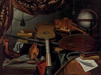 | Keywords: Bartolomeo Bettera - Still Life with Musical Instruments.jpg Artwork Creator Bartolomeo Bettera Musical instruments books music scores a globe and a rooster on a table draped with a carpet century 17 oil canvas cm 73 96 5 object history b 1952 Mrs Mark C Steinberg ProvenanceEvent 1952 gift Mrs Mark C Steinberg Saint Louis Art Museum Sold to Benefit the Acquisition Fund of the Saint Louis Art Museum 1 http //stlouis art museum/emuseum/code/emuseum asp collection 6138 collectionname European 20Art 20to 201800 style Browse currentrecord 1 page collection profile objects searchdesc European 20Art 20to 201800 newvalues 1 newstyle single newcurrentrecord 8 Saint Louis Art Museum official site<br/>2 Christie's online 5287628 Other versions PD-old-100 Bartolomeo Bettera Still-life paintings of musical instruments 17th-century still life paintings Paintings of roosters |