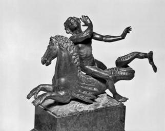 | Keywords: Bartolommeo Ammanati - Hippocamp (Sea Horse) and Rider - Walters 54465A, 54465B.jpg In antiquity hippocamps or sea horses mythical creatures that were half horse and half fish were represented drawing the chariot of Neptune Roman god of the sea Renaissance artists in the territory of Venice which trumpeted itself as ruler of the seas delighted in representing the sea god and his steeds The wider fascination for monstrous beasts of bronze in imitation of Roman tastes among northern Italian humanists and sculptors also prompted an interest in the creature between 1510 1540 Renaissance bronze marble base cm 20 1 accession number 54 465A 54 465B 79133 Henry Walters Baltimore date and mode of acquisition unknown Walters Art Museum Henry Walters Acquired by Henry Walters place of origin Padua Italy Walters Art Museum license Renaissance sculpture in the Walters Art Museum Bartolomeo Ammannati Hippocampus mythology Media contributed by the Walters Art Museum needs category review Media contributed by the Walters Art Museum needs artist update |