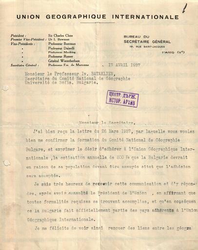 | Keywords: BASA-1524K-1-25-1-Bulgarian National Committee for Geography.JPG Писма от еждуна одния комитет по геог афия до Бълга ския национален комитет за геог афия Letters from International geography commitee to Bulgarian National Committee for Geography 1937-1946 unknown ЦДА 1524K Бълга ски национален комитет за геог афия 1 25 1 credit line exhibition history BASA Спасими <span class signature-talk >talk</span> 2015-08-24 other versions Anonymous-EU Bulgarian National Committee for Geography | ||||