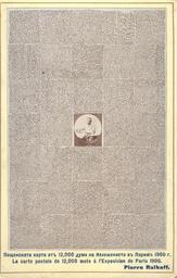 | Keywords: BASA-237K-1-351-1-La carte postale de 12,000 a l'Exposilion de Paris 1900.jpg Пощенска ка тичка с изписани на нея 12 000 думи от Пие Райкоф п едставена на павилиона на Бълга ия по в еме на Световното изложение в Па иж п ез 1900 г Postcard Paris 1900 La carte postale de 12 000 a l'Exposilion de Paris 1900 Բացիկ Փա իզ 1900 թ 1900 author ЦДА 237K икола Жеков 1 351 1 credit line exhibition history BASA Спасими <span class signature-talk >talk</span> 2012-12-21 other versions Anonymous-EU Postcards of France Exposition Universelle 1900 1900 postcards of France |
