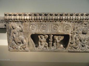 | Keywords: Base of a funerary couch (shichuang) with Sogdian scenes, view 3, Henan province, probably Ce xian, China, Period of Division, Northern Qi dynasty, 550-577 AD, marble with pigment - Freer Gallery of Art -.JPG en Exhibit in the Freer Gallery of Art Washington DC USA This artwork is old enough so that it is in the public domain Photography was permitted in the museum without restriction 2013-02-12 16 00 37 own Daderot cc-zero Funerary couch Freer Gallery Uploaded with UploadWizard | ||||