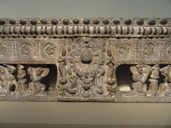 | Keywords: Base of a funerary couch (shichuang) with Sogdian scenes, view 4, Henan province, probably Ce xian, China, Period of Division, Northern Qi dynasty, 550-577 AD, marble with pigment - Freer Gallery of Art -.JPG en Exhibit in the Freer Gallery of Art Washington DC USA This artwork is old enough so that it is in the public domain Photography was permitted in the museum without restriction 2013-02-12 16 00 37 own Daderot cc-zero Funerary couch Freer Gallery Uploaded with UploadWizard | ||||