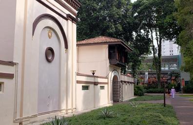 | Keywords: masjid hajjah fatimah mosque singapore kampong glam beach road public domain publicdomain outdoor Painted in brown and cream colours, the mosque is a unique blend of both Malaccan style and European classical elements. Its key elements include the entrance gate, the minaret tower, the ablution area, the prayer hall, the mausoleum, a garden and the imam's residence. Next to the mosque are ancillary buildings. infopedia.nl.sg/articles/SIP_259_2005-01-06.html Painted in brown and cream colours, the mosque is a unique blend of both Malaccan style and European classical elements. Its key elements include the entrance gate, the minaret tower, the ablution area, the prayer hall, the mausoleum, a garden and the imam's residence. Next to the mosque are ancillary buildings. infopedia.nl.sg/articles/SIP_259_2005-01-06.html |