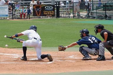 Keywords: baseball batter hit bunt sport bat game player ball athlete field play base uniform batting hitter home plate action helmet infield umpire catcher glove mitt catcher's mask fence ballpark