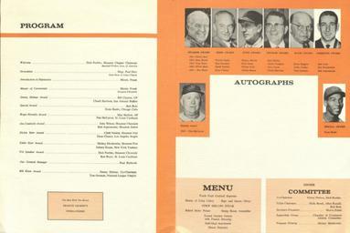 MAKE A MEME View Large Image Baseball dinner program and menu program schedule.jpg en Baseball dinner program and menu program schedule Emerald Room Shamrock Hilton Hotel Front cover features 7 photographs of baseball players Tim Carver Dean Chance Bob Aspromonte ...