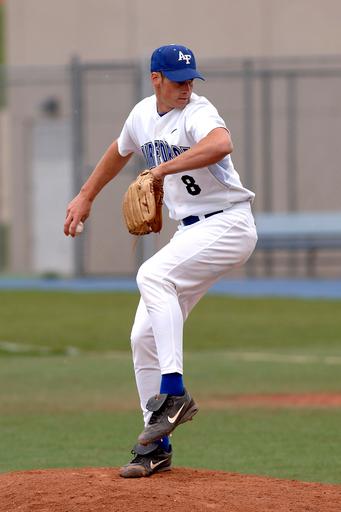 Keywords: baseball pitcher ball throw athlete college game sport infield field mound pitch uniform male glove competition