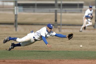 Keywords: baseball player shortstop infield sport playing glove infielder diving action college game athlete
