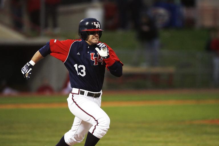 Keywords: baseball player sport game uniform baseball player field athlete competition action american running runner scoring heading for home college activity helmet athletic active sprinting focus concentration