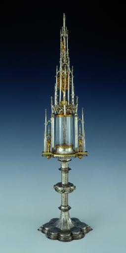| Keywords: Basel Munster treasury Hüglin monstrance 1882-79 HMB c4308.jpg object type LangSwitch Basle ca 1505; Silver cast embossed parcel gilt with enamel; height 88 7 cm; Inv 1882 79 Bâle vers 1505; Argent fondu repoussé partiellement doré avec émail; H 88 7 cm; Inv 1882 79 Basel um 1505; Silber gegossen getrieben teilweise vergoldet mit Email; H 88 7cm; Inv 1882 79 place of creation before 1509 Silber geschmiedet getrieben gegossen ziseliert poliert teilweise vergoldet; transluzide Emails aus Grubenschmelz; neues Zylinderglas Gewicht 2394 0 g H 88 4 cm; B 22 4 cm Fuss Institution Historisches Museum Basel object history credit line accession number Inv 1882 79 Peter Portner Institution Historisches Museum Basel artwork license PD-old-100 photo license cc-by-sa-4 0 photo date 2007-01-08 14 59 14 other versions 47 5544 7 59 cc-by-sa-4 0 Historisches Museum Basel CH-HMB Basel Cathedral Treasury Uploaded with UploadWizard Basler Münsterschatz Christian art |
