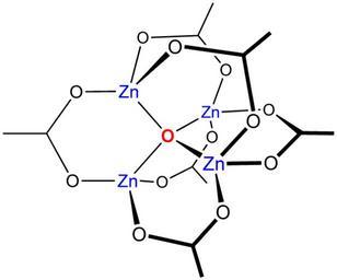 Keywords: BasicZnAcetate.png chem structure of zinc acetate Own 2007-06 Smokefoot Zinc compounds Basic acetates