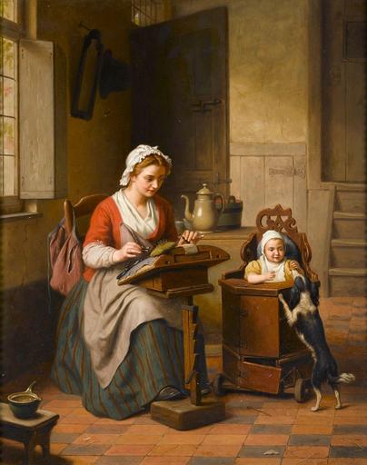 Keywords: Basile de Loose The Lacemaker.jpg The Lacemaker Signed B D LOOSE Oil on panel 56 x 45 cm http //www bonhams com/ Bonhams < 1885 PD-old-100 Images from Bonhams Basile de Loose 19th-century paintings location missing 19th-century paintings not categorised by year 19th-century genre paintings 19th-century oil paintings of sitting women at full length 19th-century paintings of dogs Chairs in art Children's high chairs 1885 about Girls with dogs in art Bobbin lacemaking in art Paintings of babies Paintings of women sewing indoors |