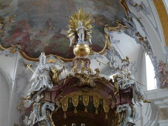 | Keywords: Basilika Vierzehnheiligen 012.JPG Gnadenaltar Die Basilika Vierzehnheiligen bei Bad Staffelstein im Landkreis Lichtenfels ist eine Wallfahrtskirchen in Oberfranken <br>Decorations above the Altar of the Vierzehnheiligen represented by the fourteen holy helpers Basilica of the Fourteen Holy Helpers Bad Staffelstein near Bamberg in Bavaria Germany Own Mattana 2009-04-16 Images by Mattana-Bamberg Germany Baroque altars in Basilika Vierzehnheiligen | ||||