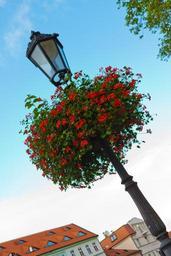 Keywords: basket beautiful colorful decoration decorative flora floral flower flowers hang hanging iron street lamp lantern light lamp post sky traditional