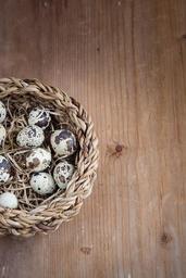 Keywords: basket egg small eggs quail eggs easter wood close still life text freedom negative space