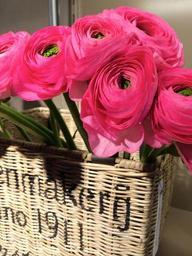 Keywords: basket pink flowers spring decoration bouquet nature wicker basket summer ranukel