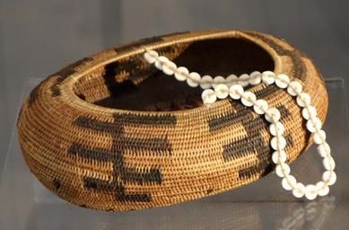 | Keywords: Basket, Pomo people, Northern California, coiled willow, sedge, bulrush roots, cotton string, clamshell disk beads - Chazen Museum of Art - DSC01870.JPG en Exhibit in the Chazen Museum of Art University of Wisconsin-Madison Madison Wisconsin USA This artwork is old enough so that it is in the public domain Photography was permitted in the museum without restriction 2013-07-21 13 01 34 own Daderot cc-zero Native American baskets in the Chazen Museum of Art Uploaded with UploadWizard Pomo baskets |