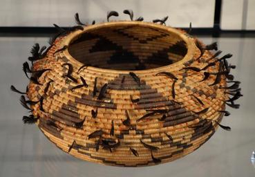 | Keywords: Basket, Pomo people, Northwestern California, c. 1900, willow, sedge, bulrush roots, glass beads, quail feathers - Chazen Museum of Art - DSC01845.JPG en Exhibit in the Chazen Museum of Art University of Wisconsin-Madison Madison Wisconsin USA This artwork is old enough so that it is in the public domain Photography was permitted in the museum without restriction 2013-07-21 12 59 11 own Daderot cc-zero Native American baskets in the Chazen Museum of Art Uploaded with UploadWizard Pomo baskets |