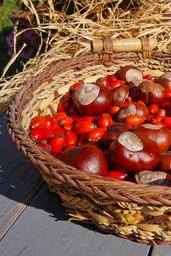 Keywords: basket rosehips chestnut autumn