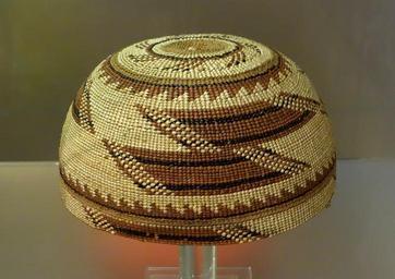 | Keywords: Basket skull cap, Yurok, before 1909, pine root, woodwardia fern, beargrass, maidenhair fern - Oakland Museum of California - DSC05072.JPG en Exhibit in the Oakland Museum of California Oakland California USA This work is in the public domain because its maker died more than 70 years ago Photography was permitted in the museum without restriction 2013-11-15 16 37 03 own Daderot other versions cc-zero Native American baskets in the Oakland Museum of California Uploaded with UploadWizard Yurok |