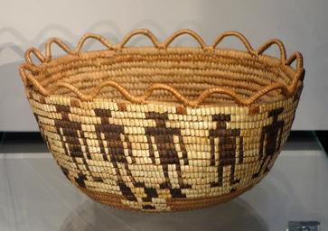 | Keywords: Basket, Yakima people, Washington, late 19th to early 20th century, coiled cedar root and bark, bear grass, horsetail root - Chazen Museum of Art - DSC01865.JPG en Exhibit in the Chazen Museum of Art University of Wisconsin-Madison Madison Wisconsin USA This artwork is old enough so that it is in the public domain Photography was permitted in the museum without restriction 2013-07-21 13 01 12 own Daderot cc-zero Native American baskets in the Chazen Museum of Art Uploaded with UploadWizard Yakama |