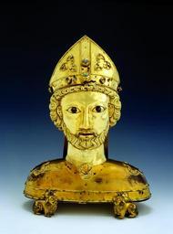 | Keywords: Basle Munster treasury reliquary StPantalus 1882-87 HMB c4286.jpg object type LangSwitch Basle after 1270; Silver and copper embossed engraved gilded; height 49 cm; Inv 1882 87 Bâle après 1270; Argent et cuivre repoussés ciselés dorés; H 49 cm ; Inv 1882 87 Basel nach 1270; Silber und Kupfer getrieben graviert vergoldet; H 49 cm; Inv 1882 87 place of creation after 1270 Kupfer- und Silberblech getrieben und vergoldet; Edelsteine Perlen; Pigmente mit Bindemittel Augen schwarz Mund rot bemalt Gewicht 5668 g H 49 cm B 36 8 cm T 22 4 cm Institution Historisches Museum Basel object history credit line accession number Inv 1882 87 Peter Portner Institution Historisches Museum Basel artwork license PD-old-100 photo license cc-by-sa-4 0 photo date 2007-01-08 14 59 14 other versions 47 5544 7 59 cc-by-sa-4 0 Historisches Museum Basel CH-HMB Basel Cathedral Treasury Uploaded with UploadWizard Basler Münsterschatz Christian art Saint Pantalus |