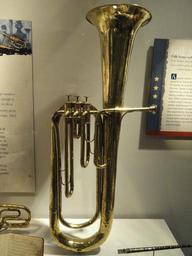 Keywords: Bass saxophone, 33rd Regiment of North Carolina Troops, 1863-1865 - North Carolina Museum of History - DSC06009.JPG Instrument identified as a bass saxophone from the 33rd Regiment of North Carolina Troops 1863-1865 Exhibit in the North Carolina Museum of History Raleigh North Carolina USA I took this photograph 2011-10-05 11 21 46 Daderot Public domain Items in the North Carolina Museum of History