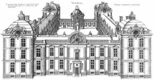 | Keywords: Bastiments v1 (Gregg 1972 p69) - Verneuil bird's-eye view garden front second design.jpg Engraving from Le premier volume des plus excellents Bastiments de France by Jacques I Androuet du Cerceau Château de Verneuil-sur-Oise Bird's-eye view of the garden front second design Scan Androuet Jacques 1576 Le premier volume des plus excellents Bastiments de France Paris Reduced size reprint Gregg International 1972 ISBN 9780576154086 1576 Creator Jacques I Androuet du Cerceau PD-Art-100 Le premier volume des plus excellents Bastiments de France Gregg 1972 reprint Château de Verneuil-sur-Oise Bird's-eye view |