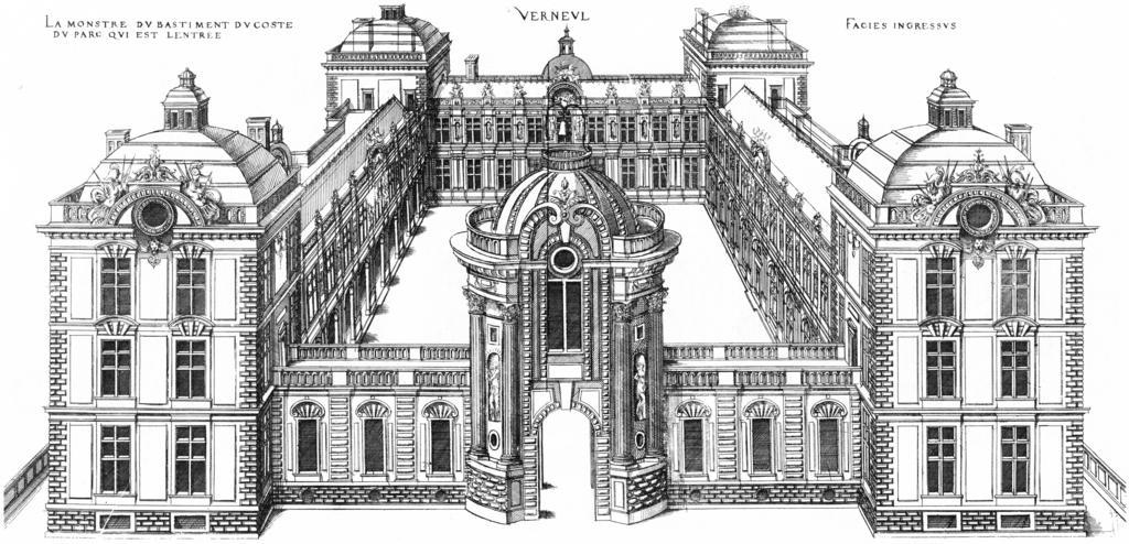 | Keywords: Bastiments v1 (Gregg 1972 p78) - Verneuil bird's-eye view entrance front second design.jpg Engraving from Le premier volume des plus excellents Bastiments de France by Jacques I Androuet du Cerceau Château de Verneuil-sur-Oise Bird's-eye view of the entrance front second design Scan Androuet Jacques 1576 Le premier volume des plus excellents Bastiments de France Paris Reduced size reprint Gregg International 1972 ISBN 9780576154086 1576 Creator Jacques I Androuet du Cerceau PD-Art-100 Le premier volume des plus excellents Bastiments de France Gregg 1972 reprint Château de Verneuil-sur-Oise Bird's-eye view |