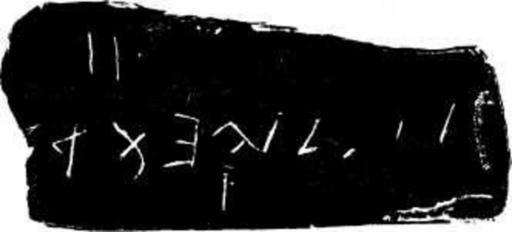 | Keywords: Bat-creek-inscription.jpg en The Bat Creek inscription as recorded by Cyrus Thomas in 1894 The inscription was found on a stone excavated by a Smithsonian mound survey team in the Little Tennessee Valley Loudon County Tennessee in the southeastern United States Proponents of Pre-Columbian transatlantic contact argue that the inscription is actually Paleo-Hebrew 12th Annual Report of the Bureau of American Ethnology to the Secretary of the Smithsonian Institution 1890-1891 1894 Report on the Mound Explorations of the Bureau of Ethnology Government Printing Office Washington D C Cyrus H Thomas 1894 PD-USGov Bat Creek inscription |